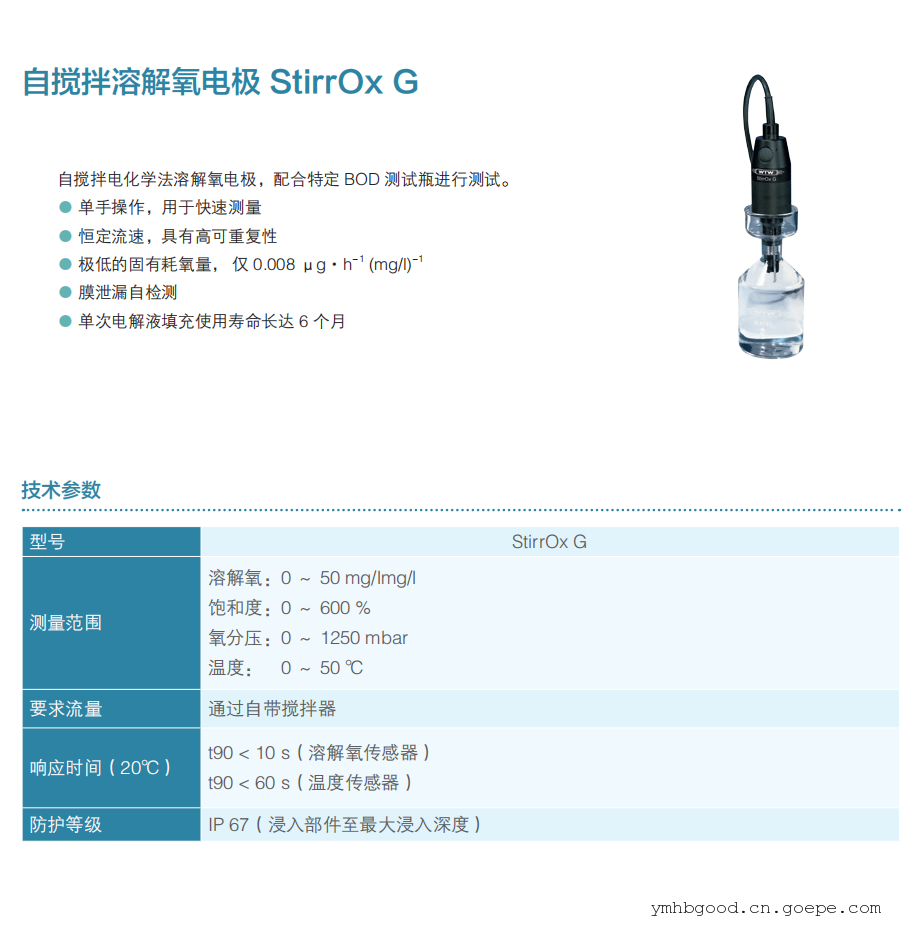 自攪拌溶解氧電極StirrOx-G 攪拌與測量同時進行