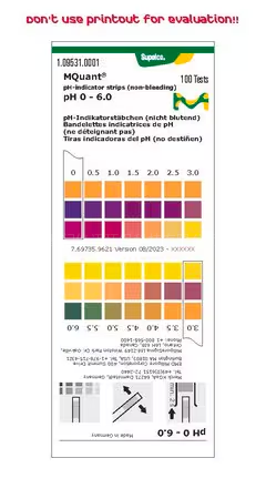 非滲漏 pH 0 - 0.5 - 1.0 - 1.5 - 2.0 - 2.5 - 3.0 - 3.5 - 4.0 - 4.5 - 5.0 - 5.5 - 6.0 MQuant®
