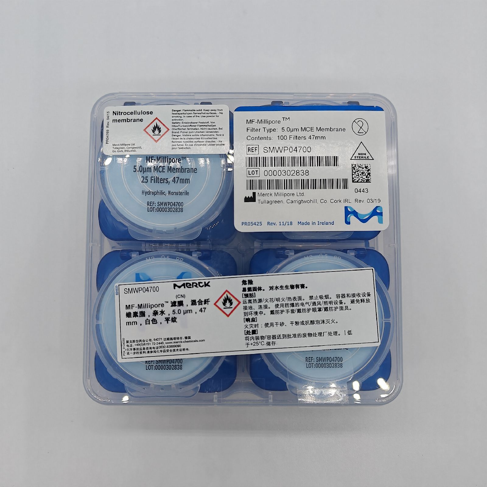這種47 mm MF-Millipore濾膜由孔徑為5.0 um(5微米過濾器)的混合纖維素濾膜構(gòu)成。MF-Millipore濾膜由纖維素醋酸酯和纖維素硝酸酯的生物惰性混合物制成,被廣泛用于分析和研究應(yīng)用。