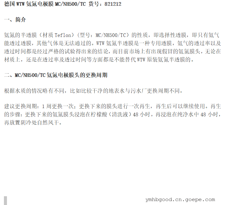德國(guó)WTW氨氮電極膜頭 貨號(hào):821212MC/NH500/TC